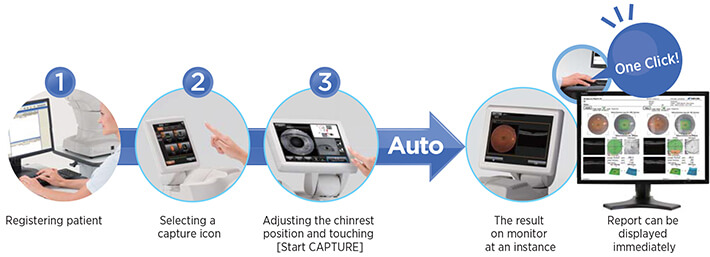 3D OCT-1 Maestroçekim alımında çekim butonuna basmaktan başka bir şeye ihtiyaç yoktur. Hizalama odaklama optimize etme ve çekim otomatik prosedürle gerçekleştirilir.Çekimden sonra rapor hemen görüntülenebilir.